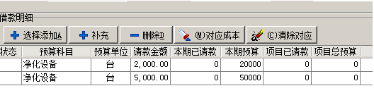 在請款過程中, 如果出現(xiàn)預(yù)算以為的請款,如:運(yùn)費(fèi)、裝卸費(fèi)等,可以利用補(bǔ)充按鈕來進(jìn)行補(bǔ)充。