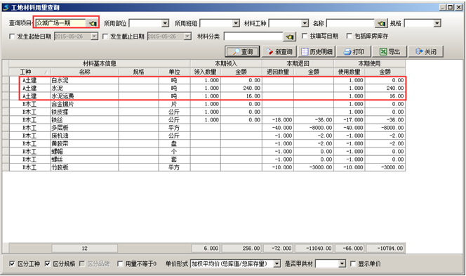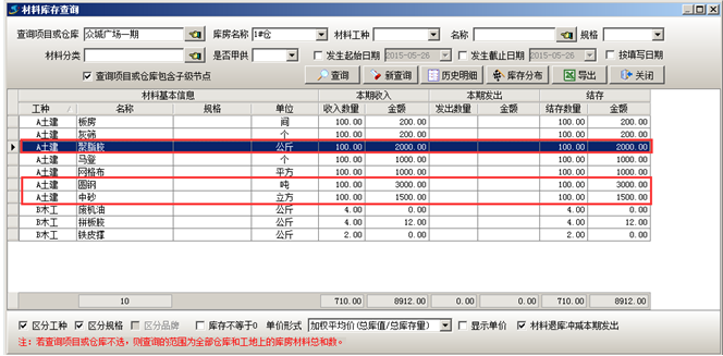 執(zhí)行完成工程項目材料采購流程之后可在對應(yīng)的倉庫中查詢到對應(yīng)的材料庫存,如圖: