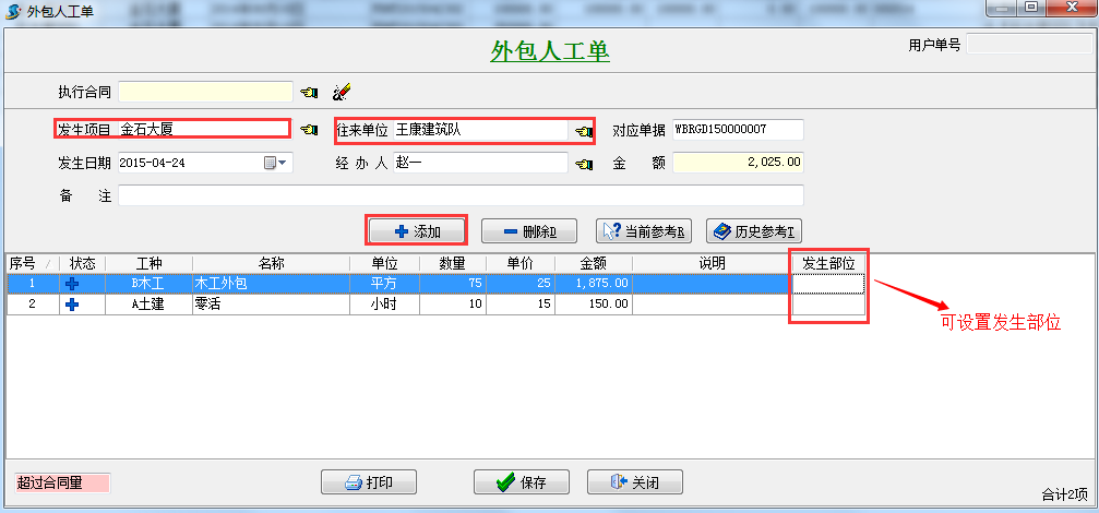 工程項(xiàng)目分包成本是根據(jù)外包人工單中項(xiàng)目名稱自動匯總統(tǒng)計(jì)到該項(xiàng)目。