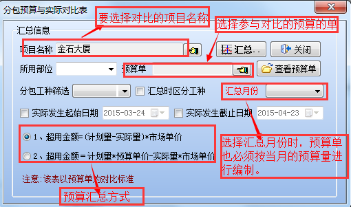 (3)【分包預(yù)算與實(shí)際對比表】是項(xiàng)目的分包預(yù)算單與實(shí)際發(fā)生的分包進(jìn)行量價的對比。對比窗口界面設(shè)置如下