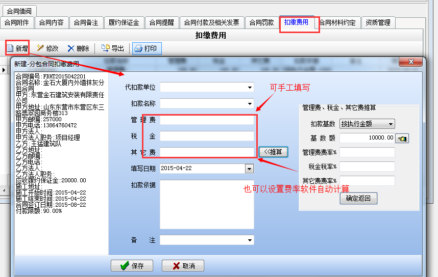 在工程項(xiàng)目分包管理中填寫完合同罰款后會在待付款中自動扣除。