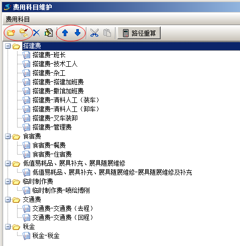 使用左上角圖標(biāo)按鈕,創(chuàng)建費(fèi)用科目,第一個(gè)按鈕的意思是新建平級(jí)科目,第二個(gè)按鈕是新建子級(jí)科目,按上下的箭頭可以調(diào)整上下位置,后面剪刀與文件代表的是復(fù)制與粘貼。