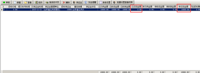 單據(jù)創(chuàng)建完成,系統(tǒng)在“還回金額”中扣除【代扣投標(biāo)費(fèi)】。如圖: