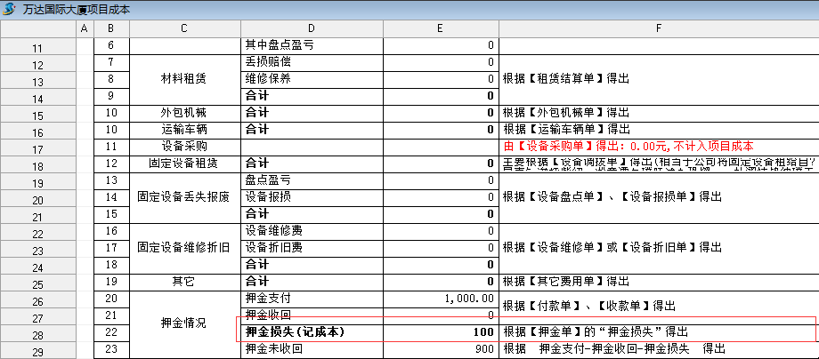 押金損失是計(jì)入成本的,可根據(jù)【項(xiàng)目成本利潤】模塊查詢得出(下圖)