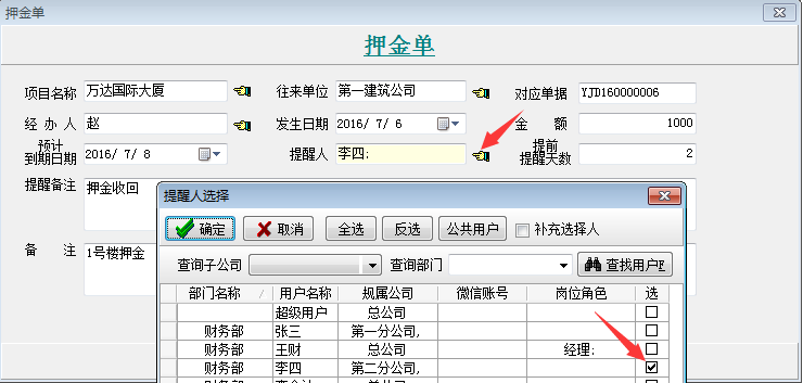 1.建立押金單、押金提醒(導(dǎo)入附件)->審核確認(rèn)(支持多級(jí)審核)
