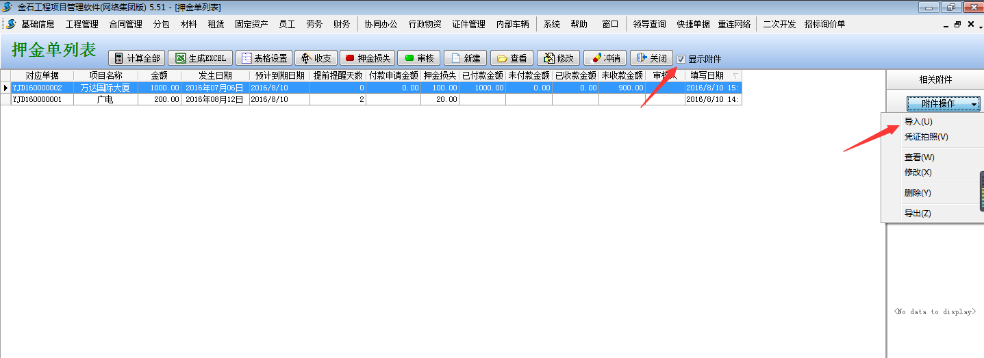 一、建立押金單、押金提醒(導(dǎo)入附件)