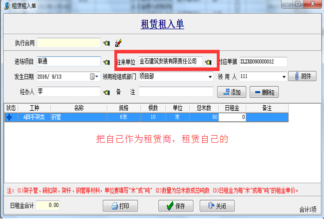 首先自己的東西,可以自己當成租賃商自己租給自己,使得期初軟件有自己的材料庫存!
