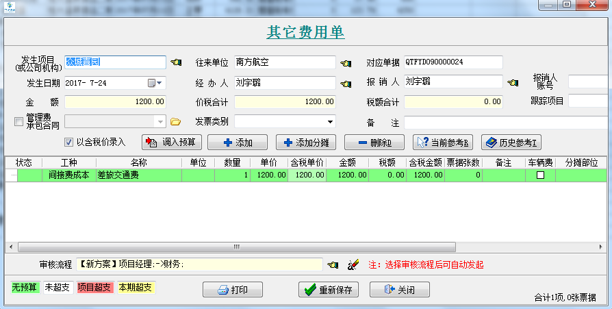 3、以其他費(fèi)用的報銷為例,先填寫一張【其他費(fèi)用單】(如果是材料采購或外包人工單等單據(jù)類似于其他費(fèi)用單)