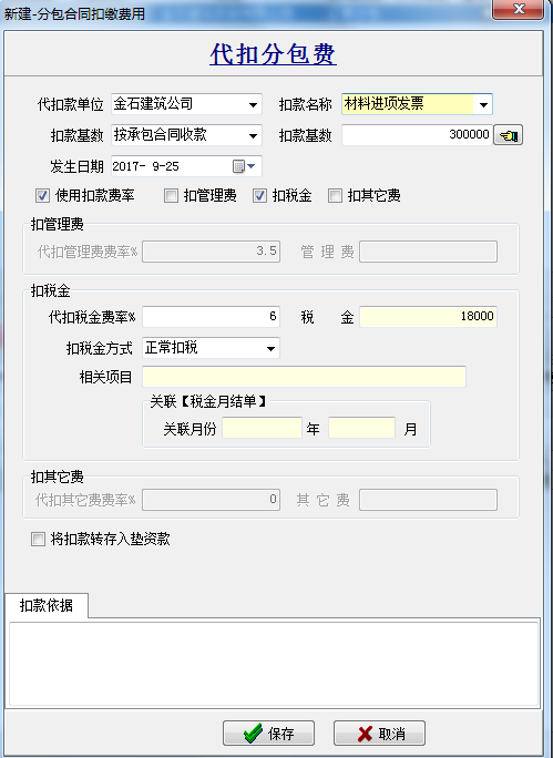 ①“分包合同”扣繳費(fèi)用,扣管理費(fèi)、扣銷項(xiàng)、進(jìn)項(xiàng)稅