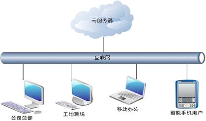 云服務器版,適用于操作員在施工現場辦公為主的公司,服務器架設在云端,所有操作人員都需要通過互聯網訪問數據庫。