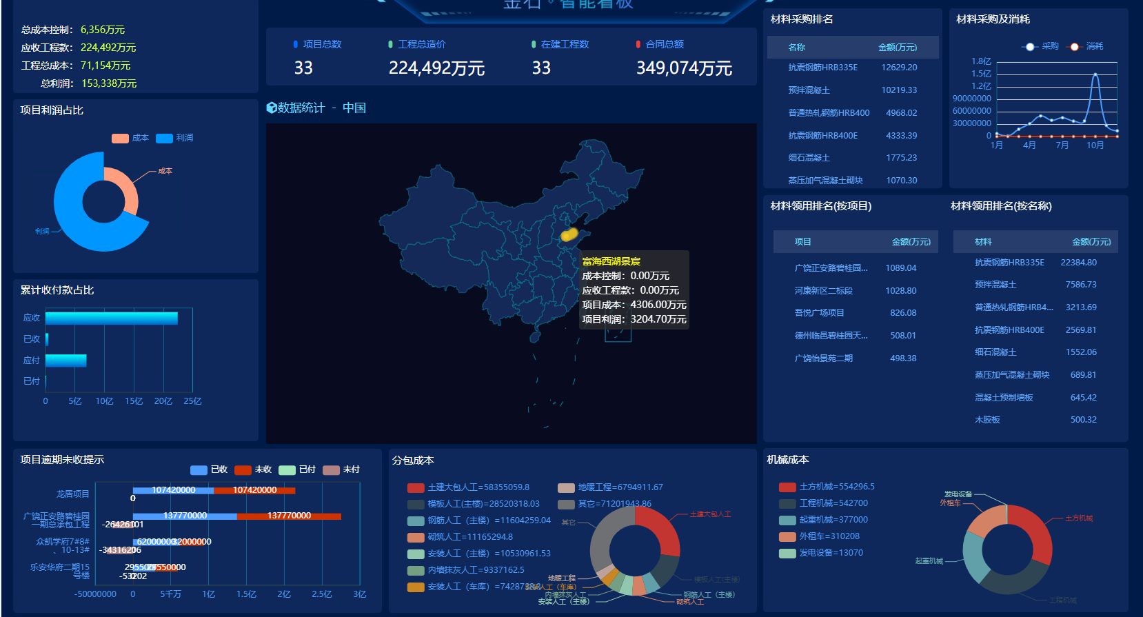 建筑工程項(xiàng)目管理軟件可以為項(xiàng)目各部門提供幫助,為項(xiàng)目運(yùn)營提供資金管控,強(qiáng)化運(yùn)營效率,為項(xiàng)目運(yùn)營提供材料、勞務(wù)、人員、OA等各方面的數(shù)據(jù)支持。
