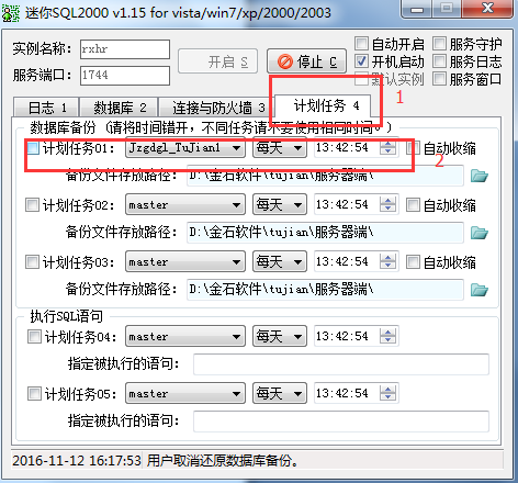 2、自動備份:選擇計劃任務(wù)→添加備份的數(shù)據(jù)庫和日期