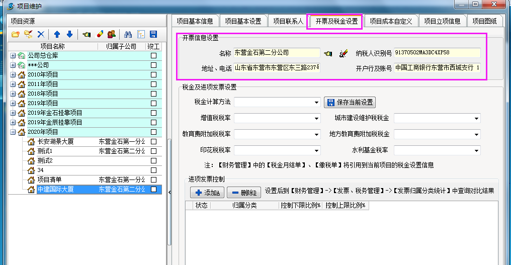 項(xiàng)目維護(hù)——設(shè)置開(kāi)票信息