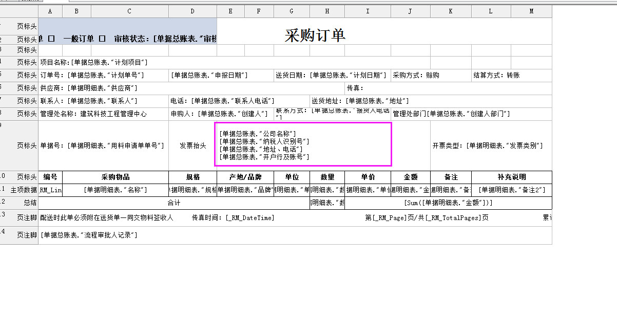 設(shè)置好項(xiàng)目開(kāi)票信息,打印采購(gòu)訂單時(shí)設(shè)置好對(duì)應(yīng)報(bào)表,會(huì)自動(dòng)顯示開(kāi)票信息。
