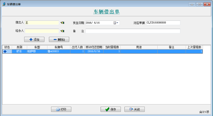 日常車輛借還業務— 主要包括【車輛借出單】【車輛里程單】【車輛歸還單】