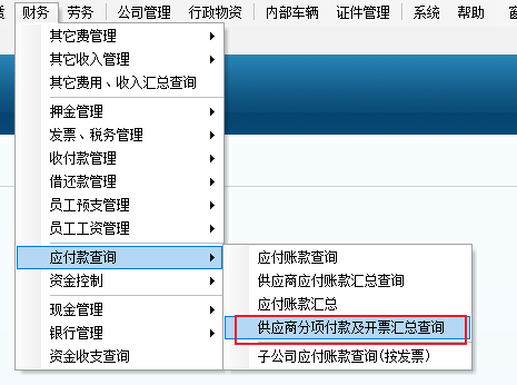 在此窗口中我們可以看到,同一項目名稱、不同往來單位,不同開票單位對應(yīng)的采購金額、發(fā)票金額、發(fā)票金額和發(fā)票減付款金額。