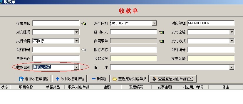 如果要收期初欠款,要到財(cái)務(wù)模塊中直接新建收款單,然后在收款名稱里選擇期初應(yīng)收款。如下圖: