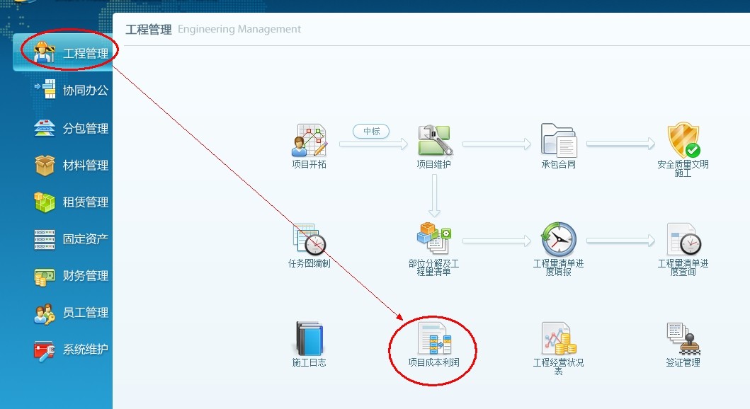 彈出項目成本利潤表,可以查看該項目的其他費用項目,是否有顯示之前錄入的費用。其他的類別隨著工程的進度中,錄入相應的單據,會產生其對應的成本費用。